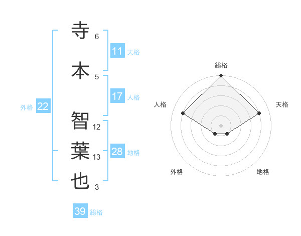 寺本 智葉也さんを姓名の画数から五運を鑑定