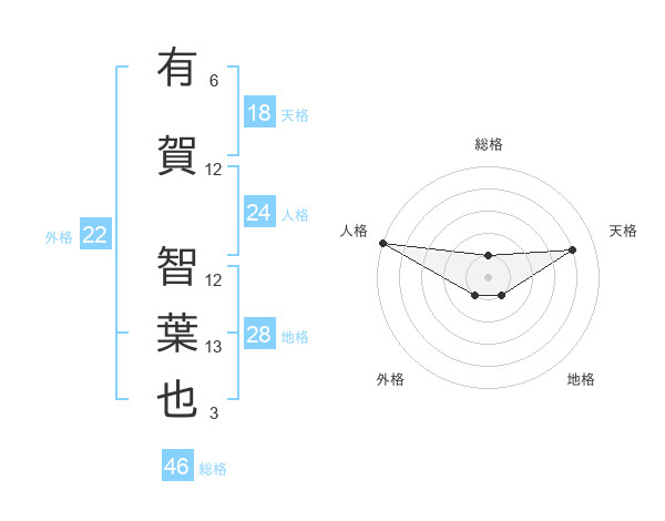 有賀 智葉也さんの総格は46画の1点!