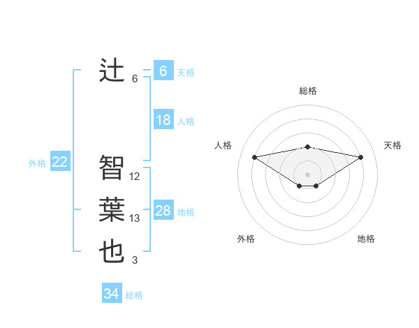 辻 智葉也さんの総格は34画の2点!