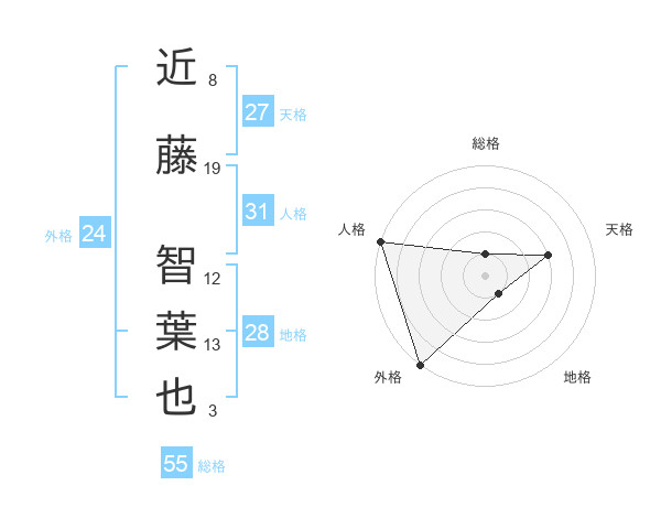 近藤 智葉也さんを姓名の画数から五運を鑑定