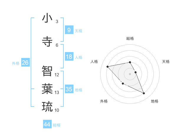 小寺 智葉琉さんを姓名の画数から五運を鑑定