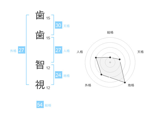 歯歯 智視さんの外格は27画の3点!