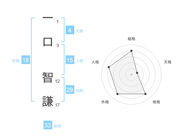 一口 智謙さんの総格は33画の4点!