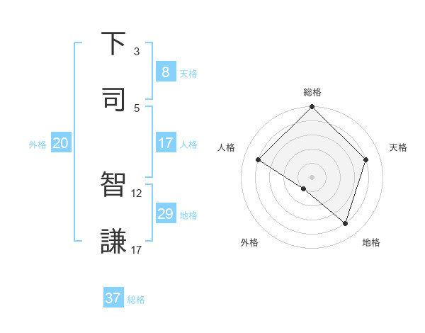 下司 智謙さんの総格は37画の5点!