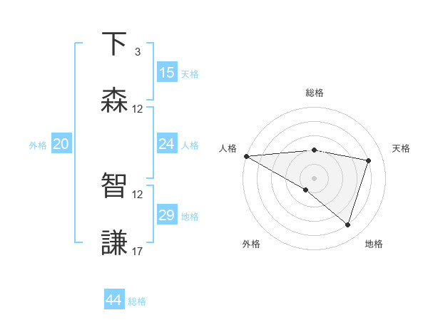 下森 智謙さんの天格は15画の4点!