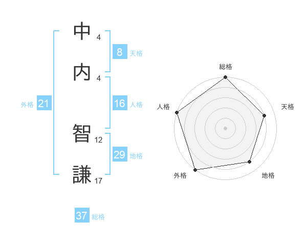 中内 智謙さんの総格は37画の5点!