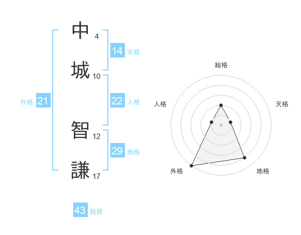 中城 智謙さんの外格は21画の5点!