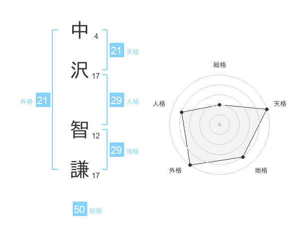 中沢 智謙さんを姓名の画数から五運を鑑定