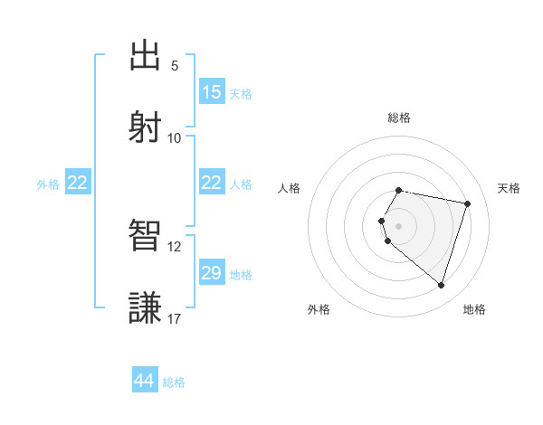 出射 智謙さんの外格は22画の1点!