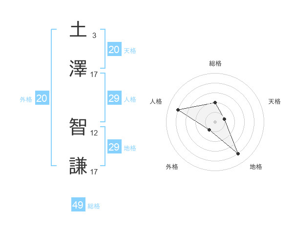 土澤 智謙さんを姓名の画数から五運を鑑定