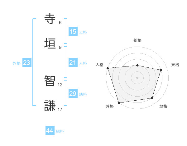 寺垣 智謙さんの総格は44画の2点!