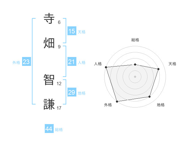 寺畑 智謙さんを姓名の画数から五運を鑑定