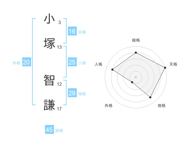 小塚 智謙さんの総格は45画の4点!