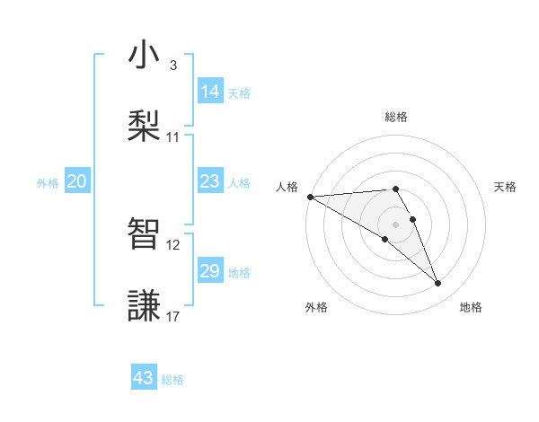 小梨 智謙さんを姓名の画数から五運を鑑定