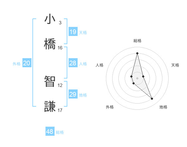 小橋 智謙さんを姓名の画数から五運を鑑定