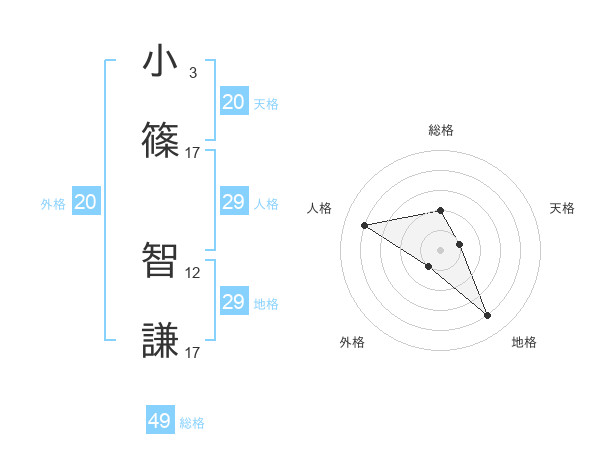 小篠 智謙さんの天格は20画の1点!