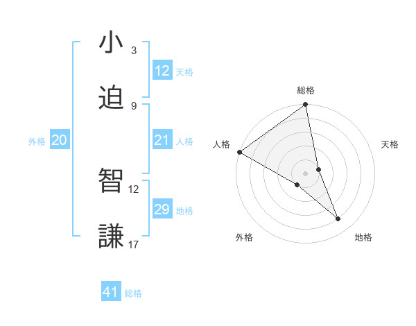 小迫 智謙さんを姓名の画数から五運を鑑定