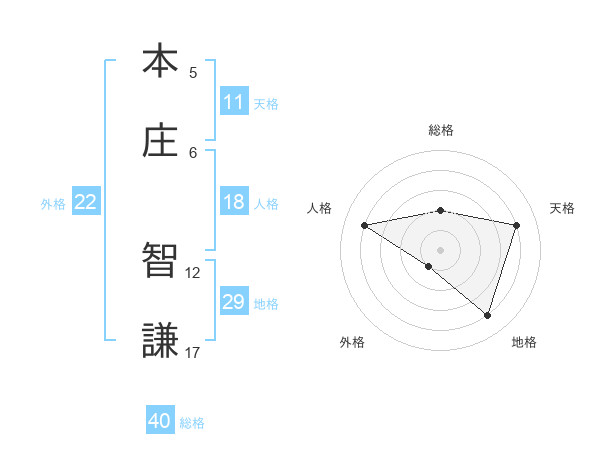 本庄 智謙さんを姓名の画数から五運を鑑定