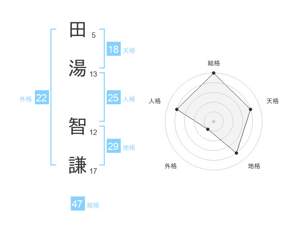 田湯 智謙さんの総格は47画の5点!