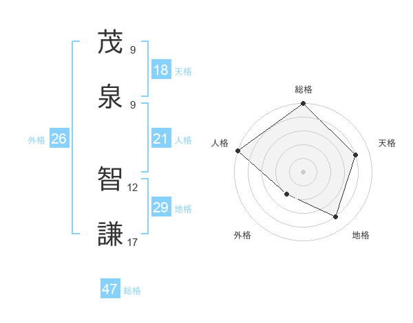 茂泉 智謙さんを姓名の画数から五運を鑑定