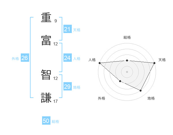重富 智謙さんの総格は50画の2点!