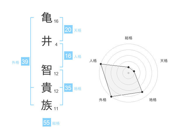 亀井 智貴族さんの外格は39画の5点!
