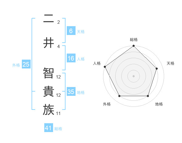 二井 智貴族さんの総格は41画の5点!