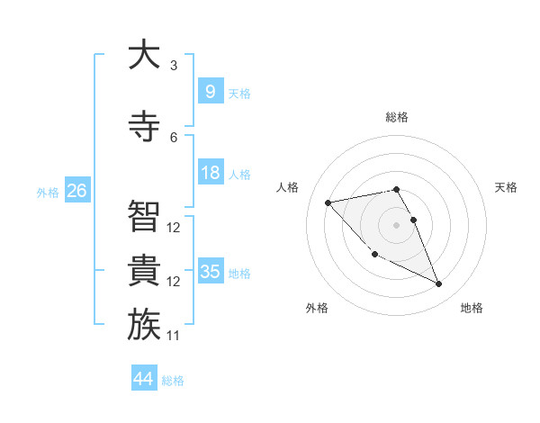 大寺 智貴族さんの総格は44画の2点!