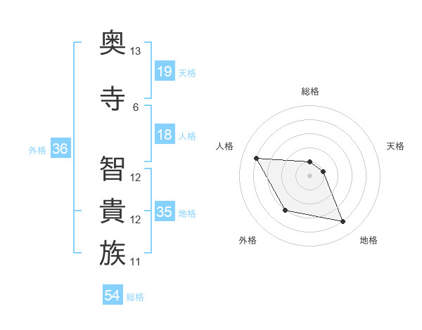 奥寺 智貴族さんの天格は19画の1点!