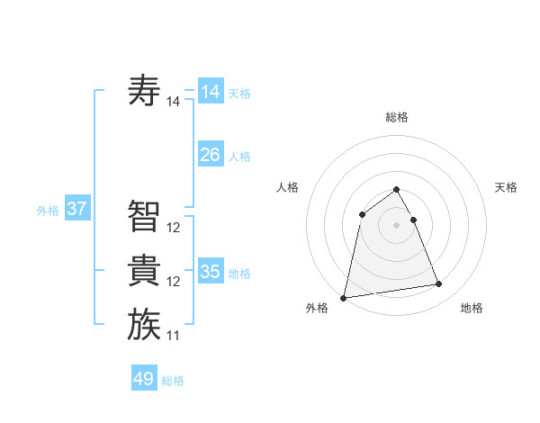 寿 智貴族さんの外格は37画の5点!