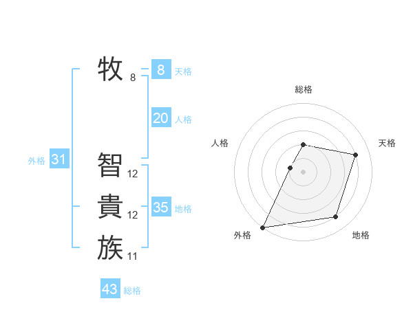 牧 智貴族さんの総格は43画の2点!
