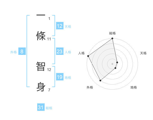 一條 智身さんの総格は31画の5点!
