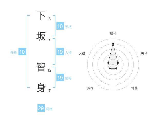 下坂 智身さんの総格は29画の4点!