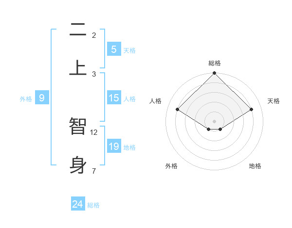 二上 智身さんの総格は24画の5点!