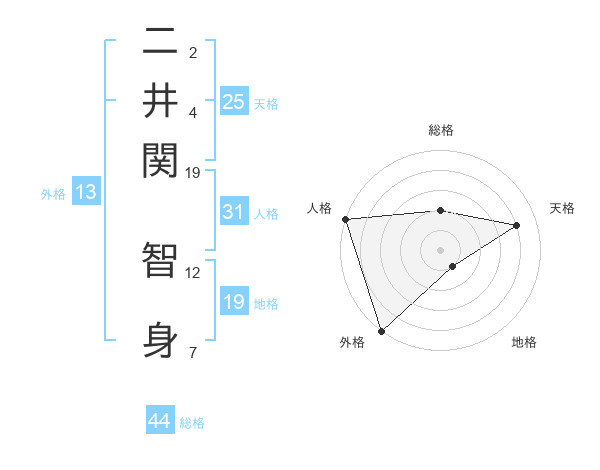 二井関 智身さんの総格は44画の2点!