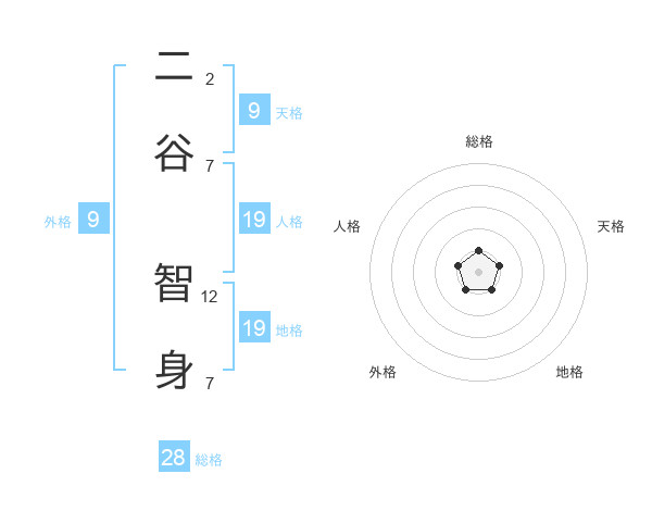 二谷 智身さんの総格は28画の1点!