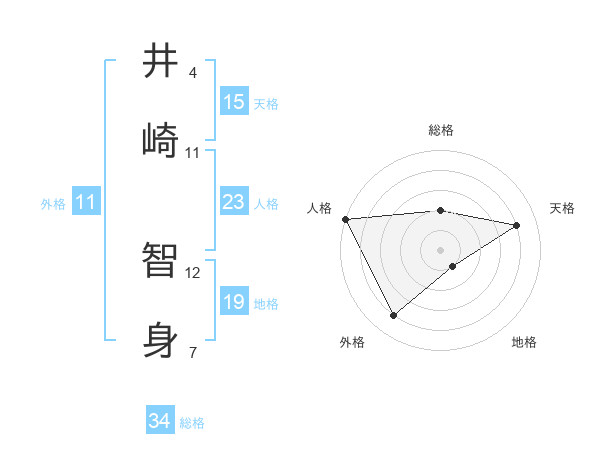 井崎 智身さんの総格は34画の2点!