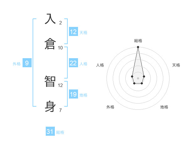 入倉 智身さんの総格は31画の5点!