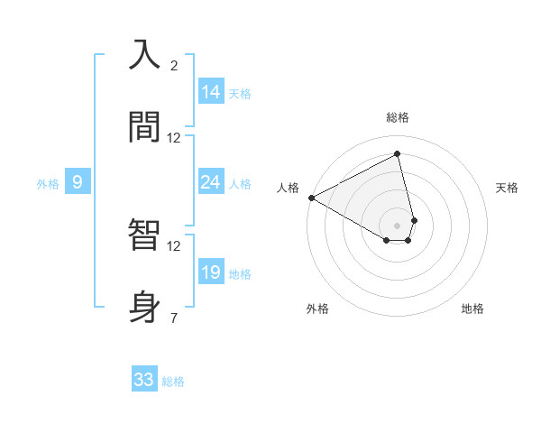 入間 智身さんの総格は33画の4点!