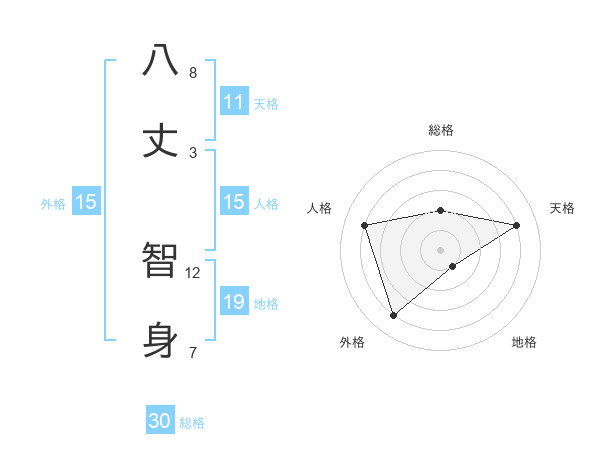 八丈 智身さんの総格は30画の2点!