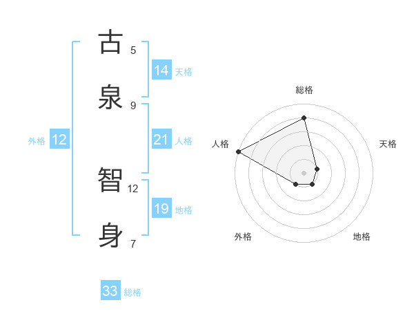 古泉 智身さんを姓名の画数から五運を鑑定