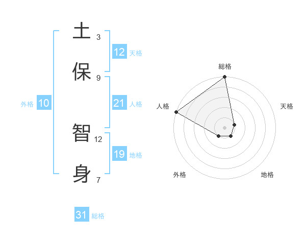 土保 智身さんの総格は31画の5点!