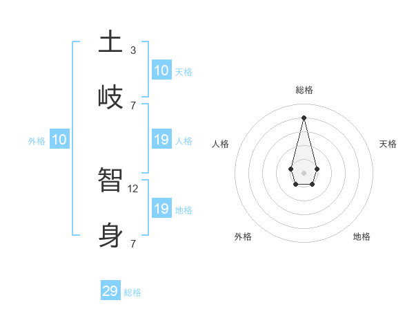 土岐 智身さんの総格は29画の4点!