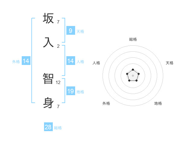坂入 智身さんの総格は28画の1点!