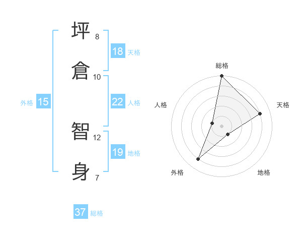 坪倉 智身さんを姓名の画数から五運を鑑定