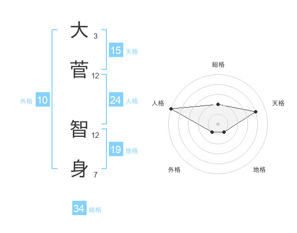 大菅 智身さんの総格は34画の2点!
