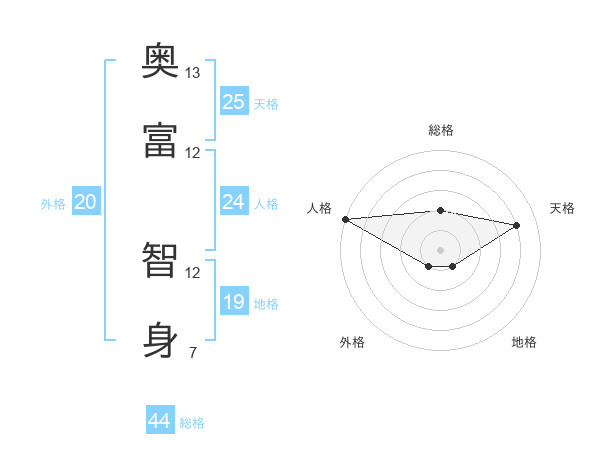 奥富 智身さんの総格は44画の2点!