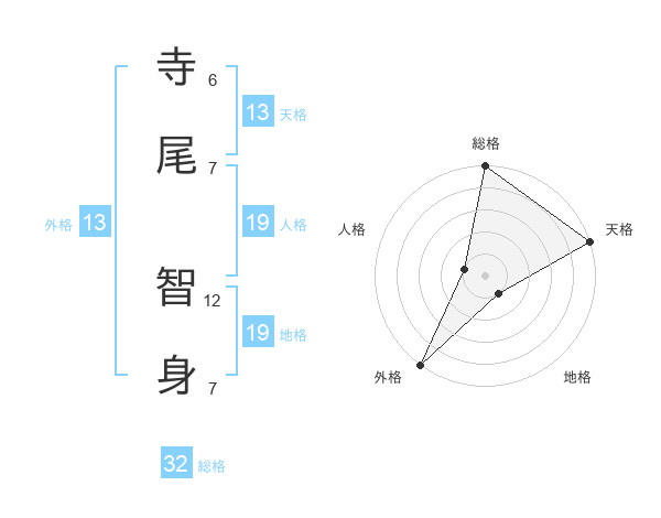 寺尾 智身さんの総格は32画の5点!