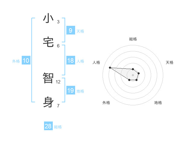 小宅 智身さんの総格は28画の1点!
