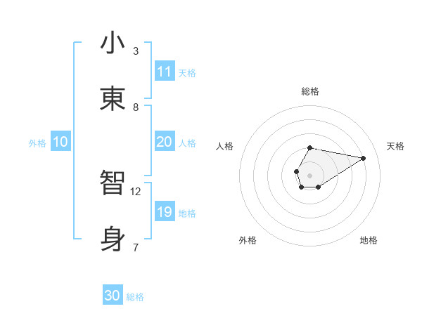 小東 智身さんの総格は30画の2点!